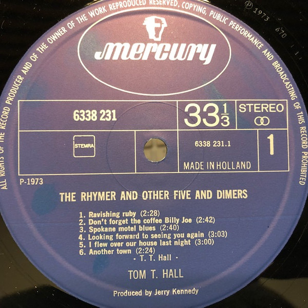 Tom T. Hall – The Rhymer And Other Five And Dimers (LP, Album)