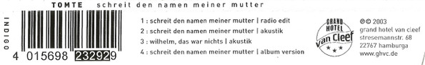Tomte – Schreit Den Namen Meiner Mutter (CD, Maxi)