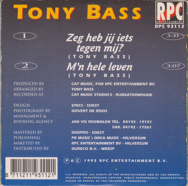 Tony Bass (2) – Zeg Heb Jij Iets Tegen Mij? (CD, Single)