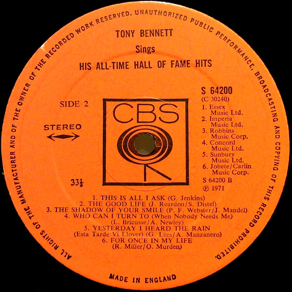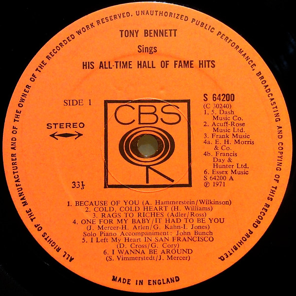 Tony Bennett – Sings His All-Time Hall Of Fame Hits (LP, Comp)