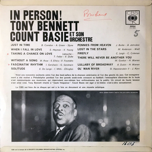 Tony Bennett With Count Basie And His Orchestra* – In Person! (LP, Album, Mono)