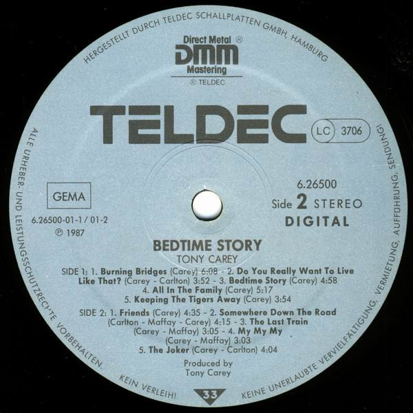 Tony Carey – Bedtime Story (LP, Album, Gat)