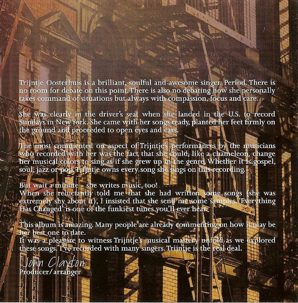 Trijntje Oosterhuis Featuring The Clayton-Hamilton Jazz Orchestra – Sundays In New York (CD, Album)