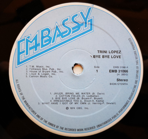 Trini Lopez – Bye Bye Love (LP, Album, RE)