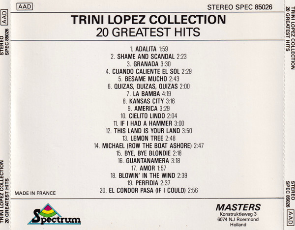 Trini Lopez – Trini Lopez – Collection 20 Greatest Hits (CD, Comp)