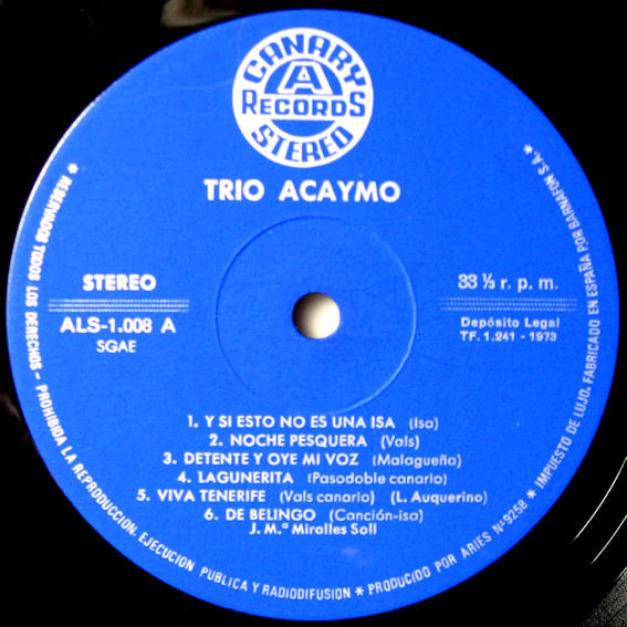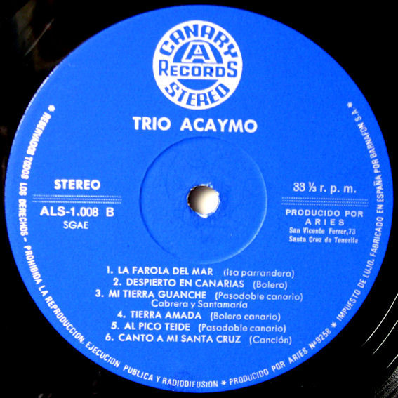 Trio Acaymo* – Canciones Y Folklore De Canarias (LP, Album)