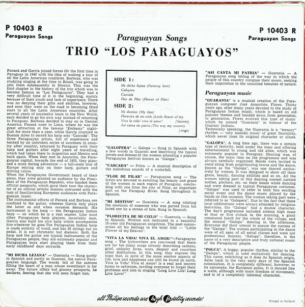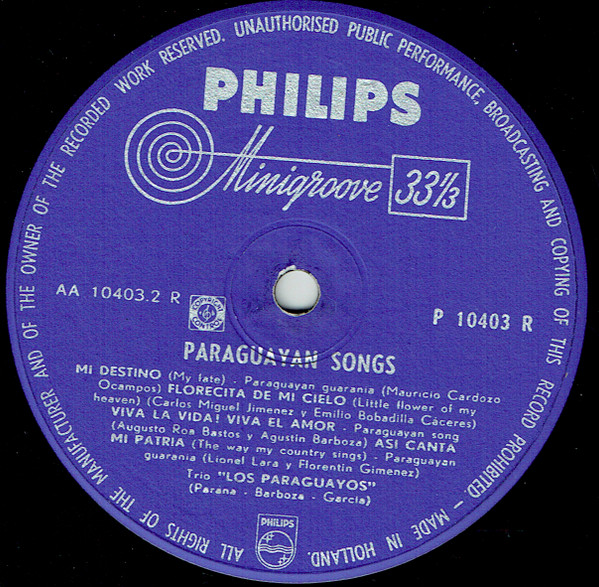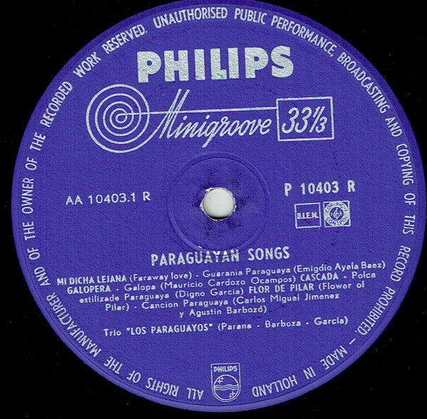 Trio Los Paraguayos – Paraguayan Songs (10″, RE)