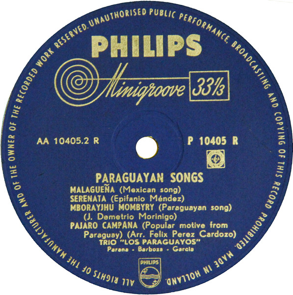Trio Los Paraguayos – Paraguayan Songs No. 2 (10″)