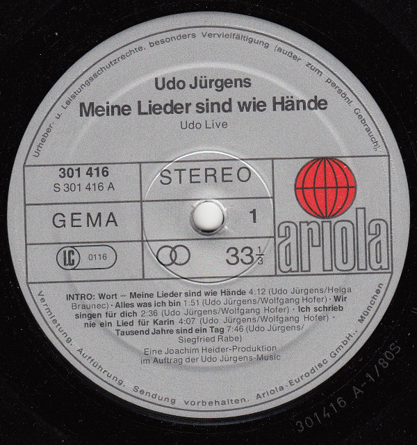 Udo Jürgens – Udo Live – Meine Lieder Sind Wie Hände (2xLP, Album)
