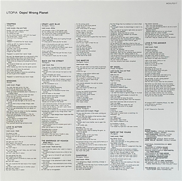 Utopia (5) – Oops! Wrong Planet (LP, Album, Ltd, Num, RE, Sil)