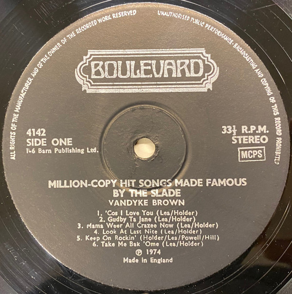 Vandyke Brown – Million Copy Hit Songs Made Famous By Slade (LP)