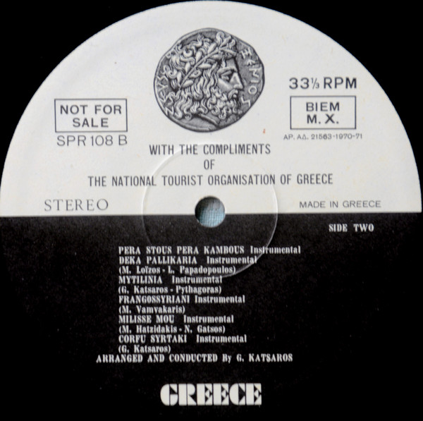 Various / Γιώργος Κατσαρός – Greece – With The Compliments Of The National Tourist Organisation Of Greece (LP, Album, Promo)