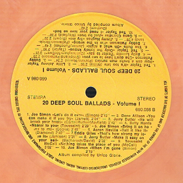 Various – 20 Deep Soul Ballads Vol.1 (LP, Comp, Ora)