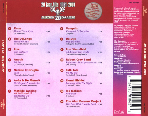 Various – 20 Jaar Hits 1981-2001 (Muziek20Daagse) (CD, Comp, Enh)