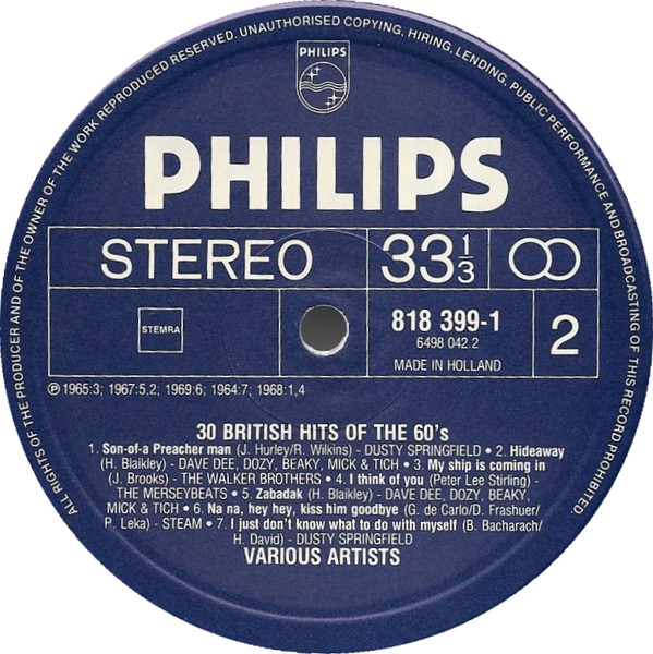 Various – 30 British Hits Of The 60’s (2xLP, Comp, RE)