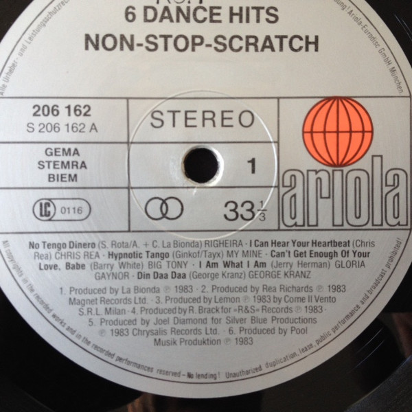Various – 6 Dance Hits – Non-Stop-Scratch (LP, S/Sided, Comp, Mixed)