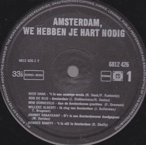 Various – Amsterdam We Hebben Je Hart Nodig (LP, Comp, Mono)