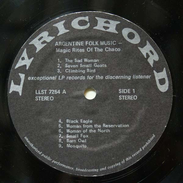 Various – Argentine Folk Music; The Chaqueños In Song And Dance, Magic Rituals Of The Chacos (LP)