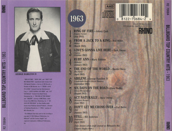 Various – Billboard Top Country Hits – 1963 (CD, Comp)