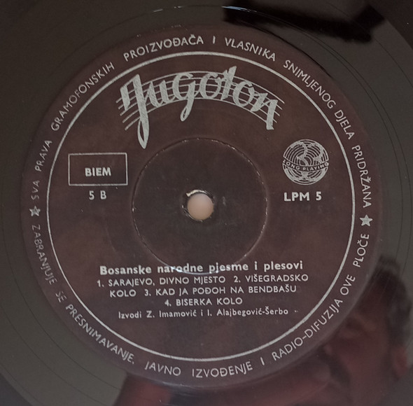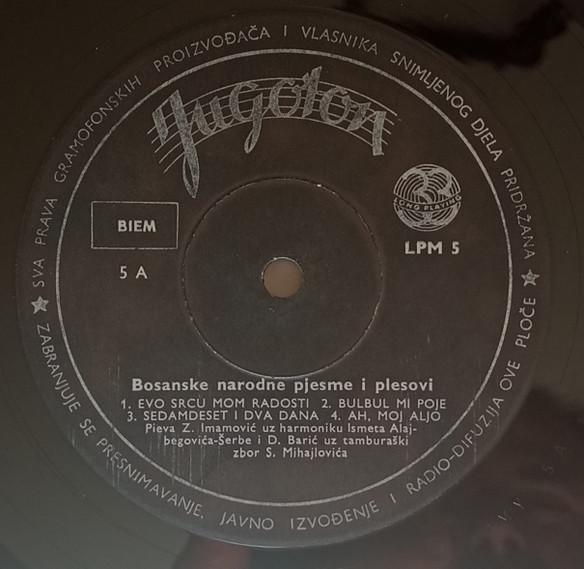 Various – Bosnian Folk Songs And Dances = Bosanske Narodne Pjesme I Plesovi (10″, Comp, RP)