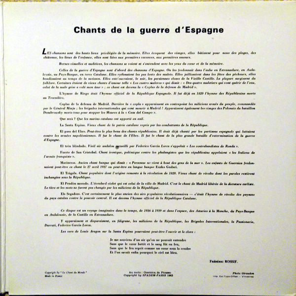 Various – Chants De La Guerre D’Espagne (LP, Comp, RE)