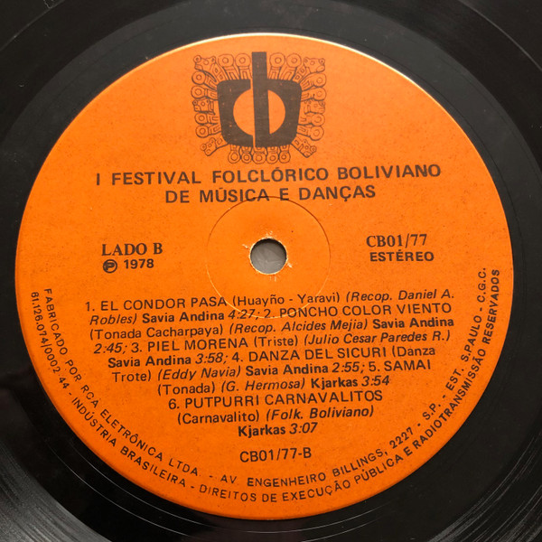 Various – Círculo Boliviano De São Paulo Apresenta 1º Festival Folclórico Boliviano De Música E Dança (LP)