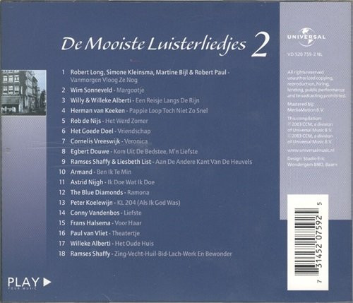 Various – De Mooiste Luisterliedjes 2 (CD, Comp, RE)