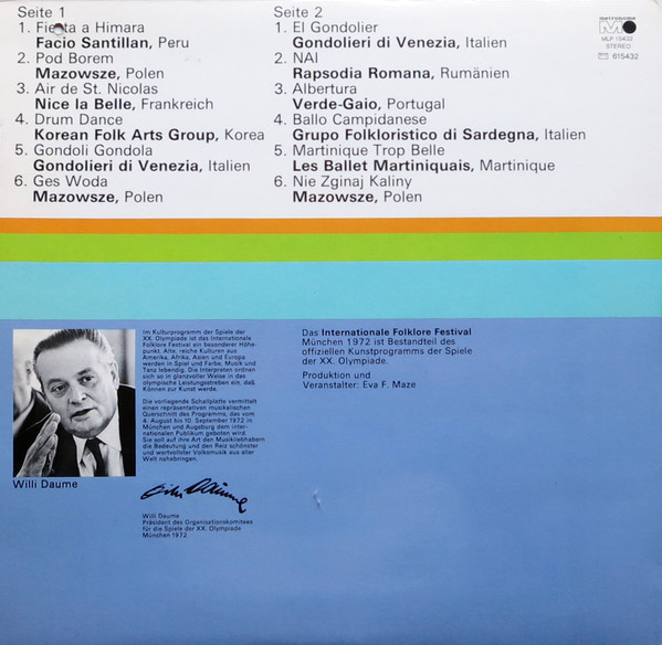 Various – Eine Auswahl Aus Dem Offiziellen Folklore-Programm Der Olympischen Spiele München 1972 (LP, Comp)