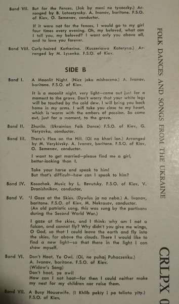 Various – Folk Dances And Songs From The Ukraine (LP, Mono)