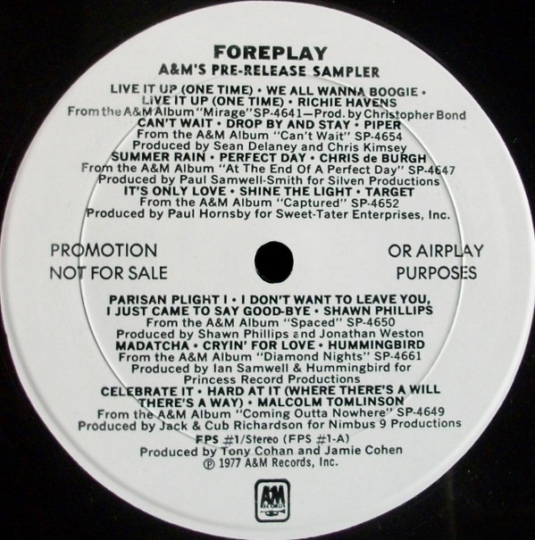 Various – Foreplay FPS#1: A&M’s Pre-Release Sampler (LP, P/Mixed, Promo, Smplr)