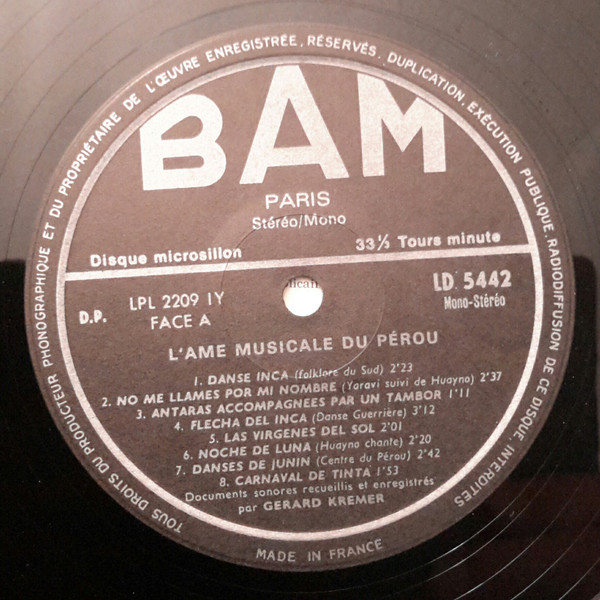Various / Gérard Krémer – L’Ame Musicale Du Pérou (LP, Mono)