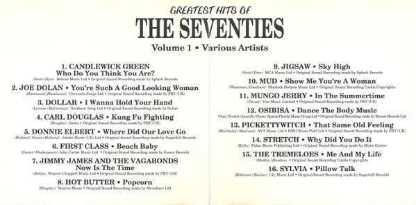 Various – Greatest Hits Of The Seventies Volume One (CD, Comp)