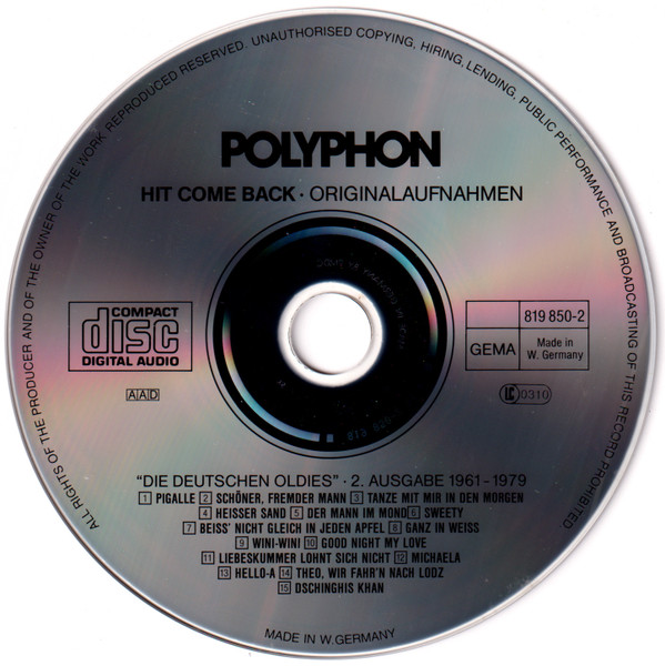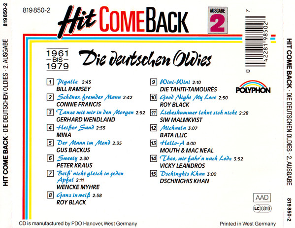 Various – Hit Come Back • Die Deutschen Oldies • 2. Ausgabe • 15 Nr. 1 Single Hits 1961 Bis 1979 • Originalaufnahmen (CD, Comp, RE, RP, PMD)