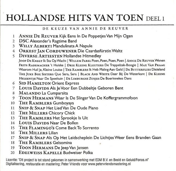 Various – Hollandse Hits Van Toen Deel 1 – De Keuze Van Annie de Reuver (CD, Comp)