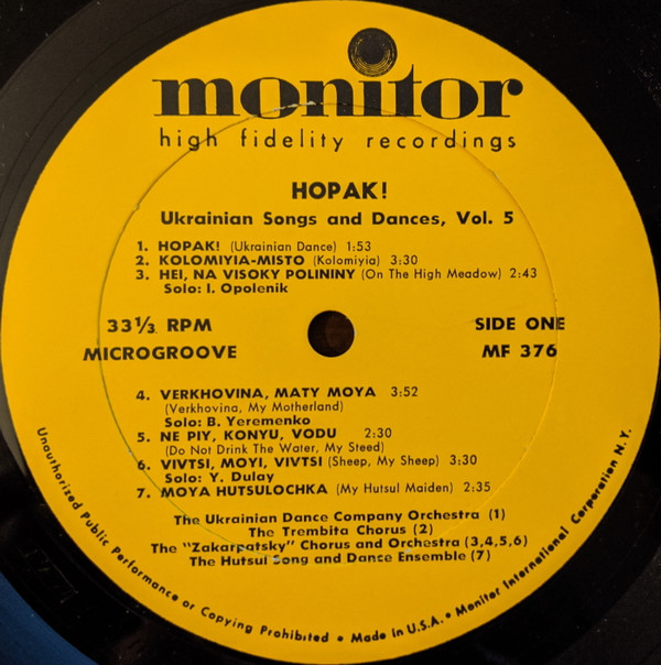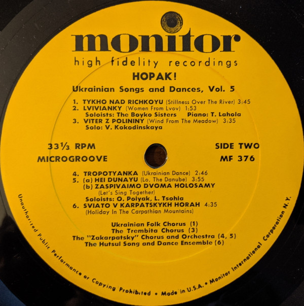 Various – Hopak! Ukrainian Songs and Dances Volume 5 (LP, Mono)