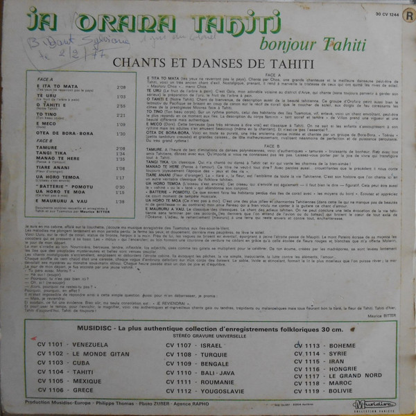 Various – Ia Orana Tahiti (Bonjour Tahiti) (LP, RE, RP)