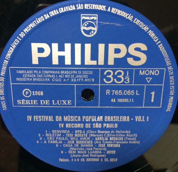 Various – IV Festival Da Música Popular Brasileira – Vol. 1 (LP, Mono)