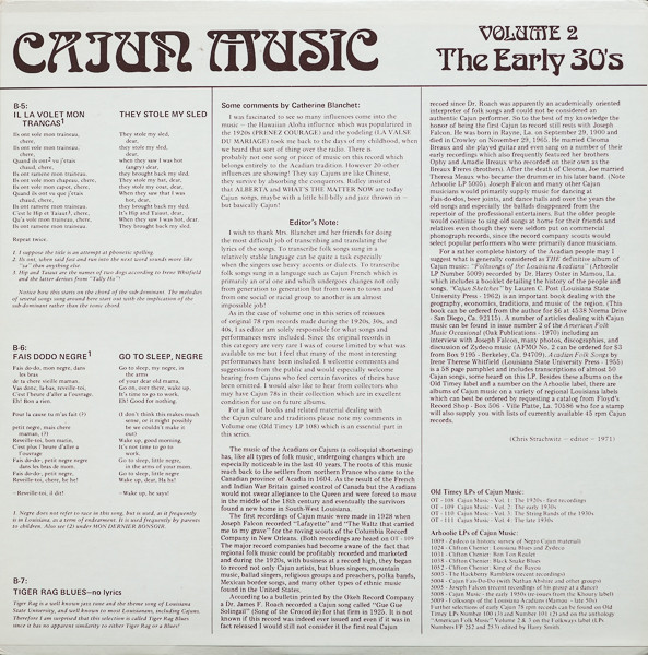 Various – Louisiana Cajun Music Volume 2 – The Early 30’s (LP, Comp, Gat)