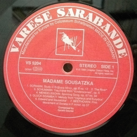 Various – Madame Sousatzka (Music From The Film) (LP, Album, Comp)