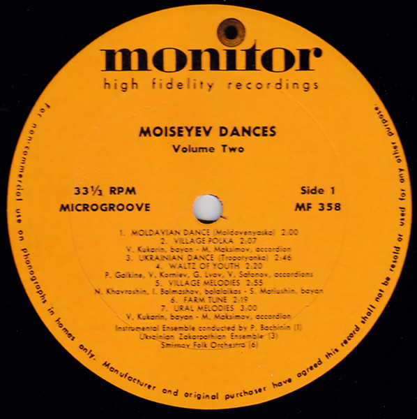 Various – Moiseyev Dances Volume Two (LP, Mono)
