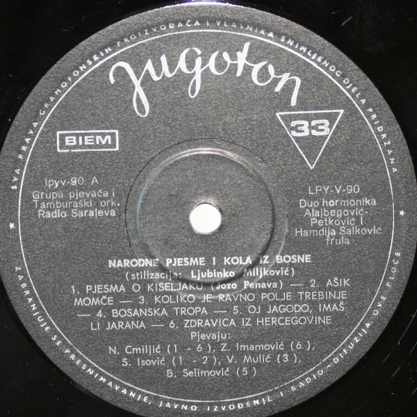Various – Narodne Pjesme I Plesovi Iz Bosne (Narodne Pjesme I Kola Iz Bosne) (LP, Album, RE)