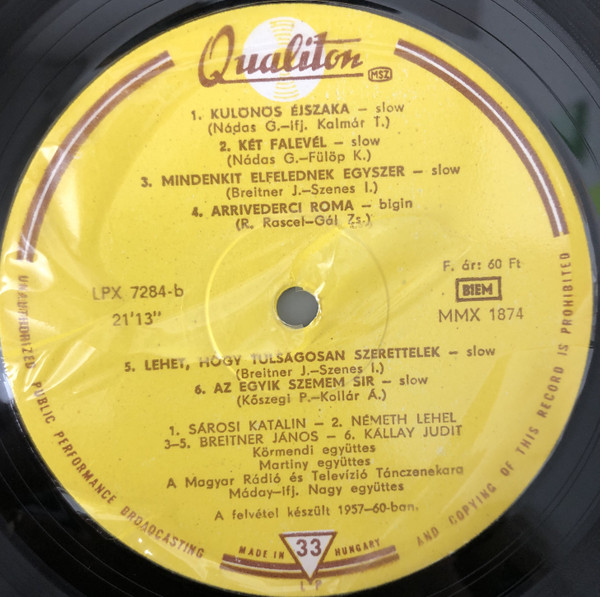 B5. Breitner János, Magyar Rádió És Televízió Tánczenekara – Lehet, Hogy Túlságosan Szerettelek