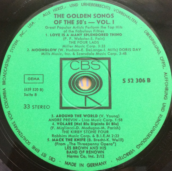 Various – The Golden Songs Of The 50’s – Vol 1 (LP, Comp)