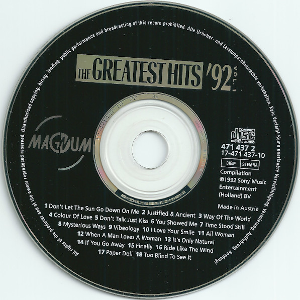 Various – The Greatest Hits ’92 – Vol. 1 (CD, Comp)