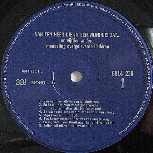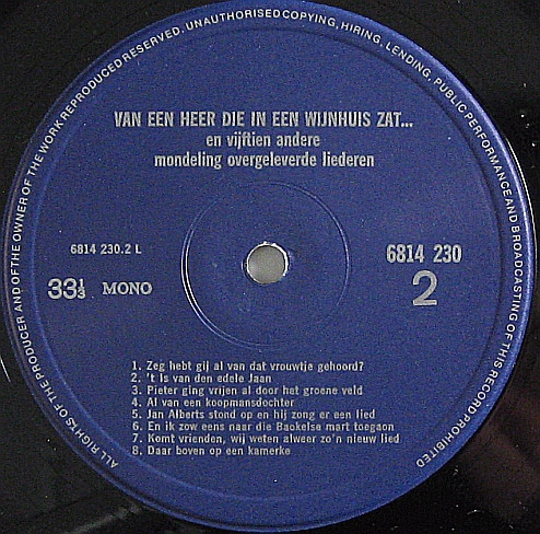 Various – Van Een Heer Die In Een Wijnhuis Zat …. En 15 Andere Mondeling Overgeleverde Liederen (LP, Comp, Mono)