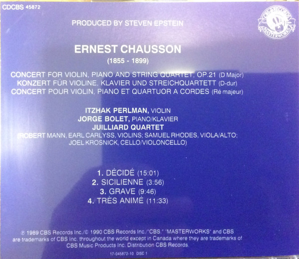 . Ernest Chausson: Concert For Violin, Piano And String Quartet, Op. 21 (D Major)