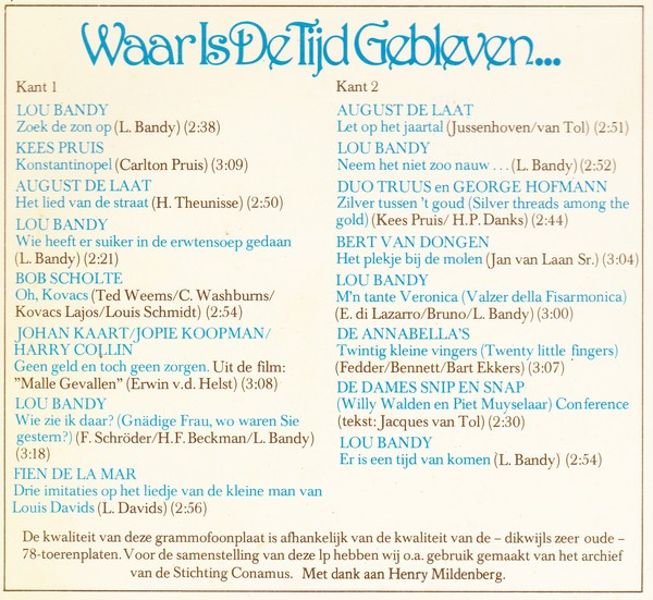 Various – Waar Is De Tijd Gebleven (LP, Comp, Mono)