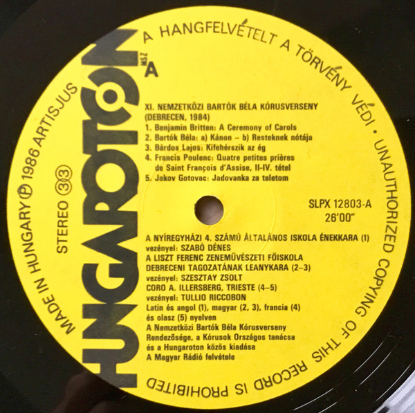 Various – XI. Nemzetközi Bartók Béla Kórusverseny 1984 (LP)