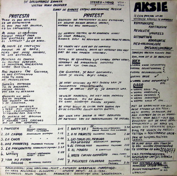 Victor Hugo Cabrera – Informasie Aksie De Andere Latijns-Amerikaanse Muziek (LP)
