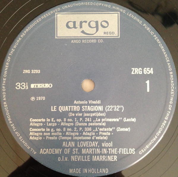 Vivaldi*, Academy Of St. Martin-in-the-Fields*, Neville Marriner*, Alan Loveday – The Four Seasons (LP, Album, RP)